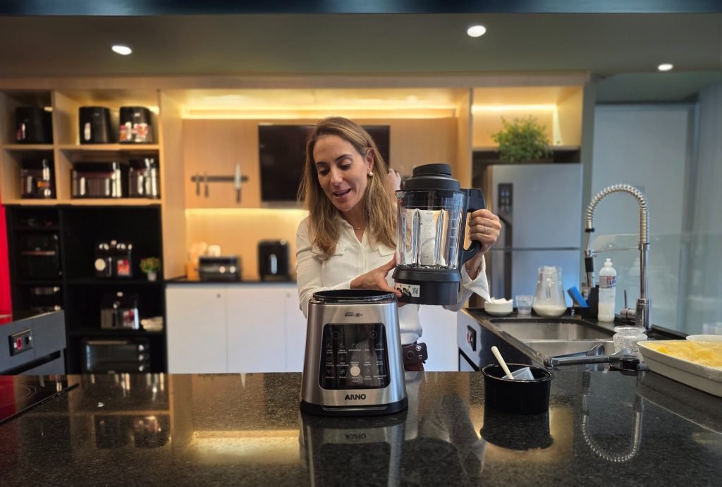 Para a cozinha, a Arno lançou o Ultraforce Cook LN95, um liquidificador de 1100 W que promete agilidade no preparo de alimentos. O aparelho possui 10 programas automáticos, permitindo diferentes modos de operação conforme a necessidade.