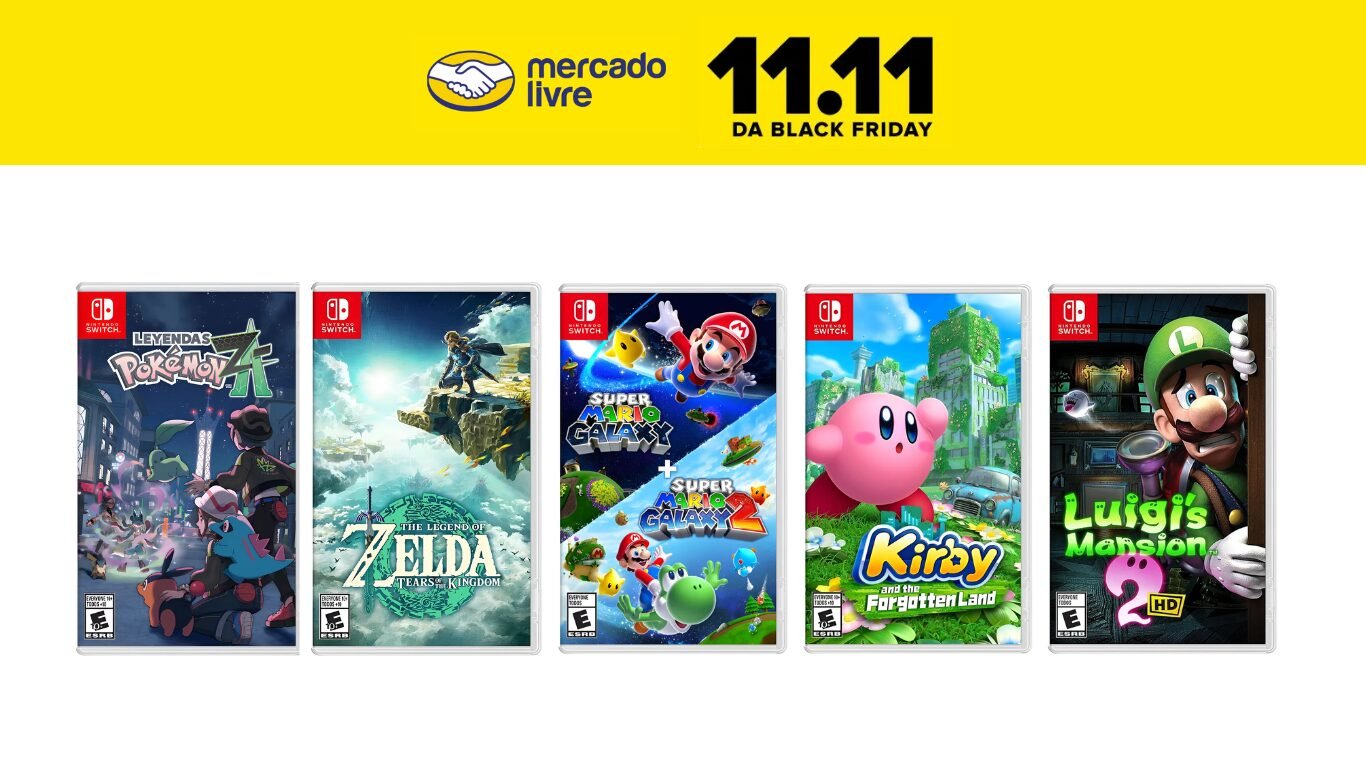 A Oferta 11.11 traz descontos significativos em cinco jogos para Nintendo Switch no Mercado Livre. Os consumidores encontram títulos com preços reduzidos durante este período promocional.